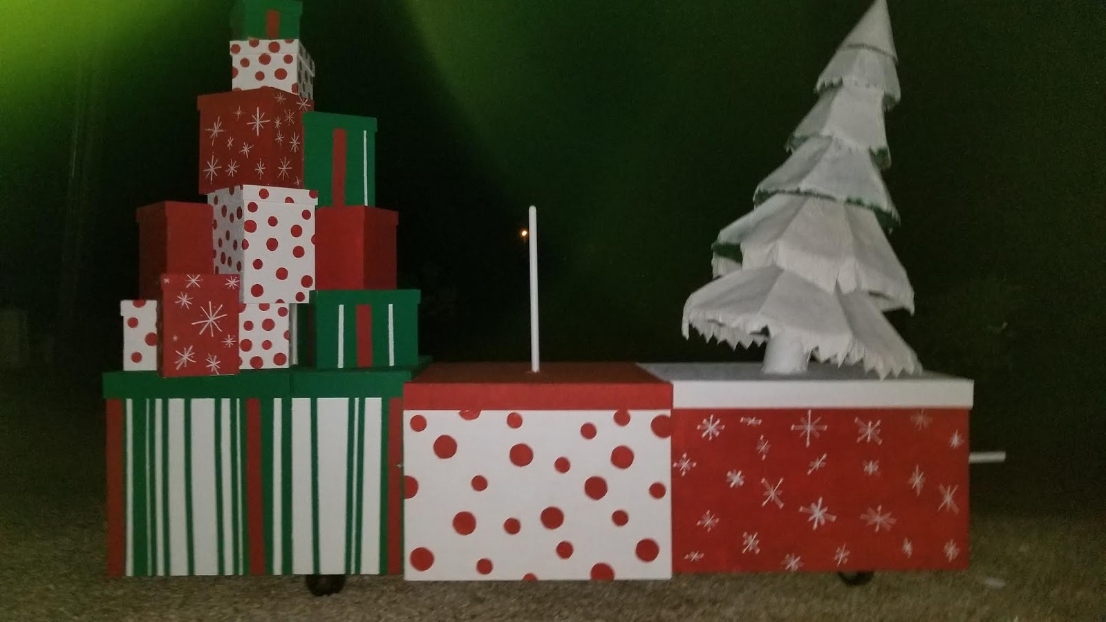 So, the first 3 floats were taken down to Summerlin Nevada. Kyle took the Gingerbread house down on Friday afternoon and then he and JoEllen took the Hooville float Saturday and Brad and Joel followed them with the Present Float. It was CRAZY!